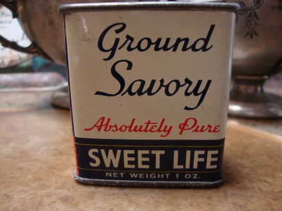 Title (ebay affiliate link): VINTAGE SWEET LIFE GROUND SAVORY SPICE TIN, 1 1/4 OZ., ALMOST FULL