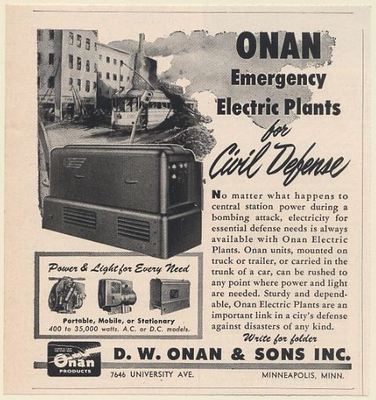 Title (ebay affiliate link): 1952 Onan Emergency Electric Plants for Civil Defense D W Onan & Sons Print Ad