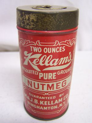 Title (ebay affiliate link): Vintage KELLAM'S Pure NUTMEG Spice Advertising Tin Box Canister 2 oz. Binghamton