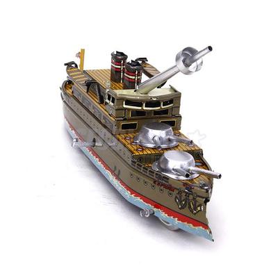 Vintage Wind Up Iron Battleship Ship Toy clockwork Collectible Gift w windup Key