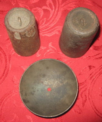 Antique Late 1800's Weight Driven Clock Weights & Bell
