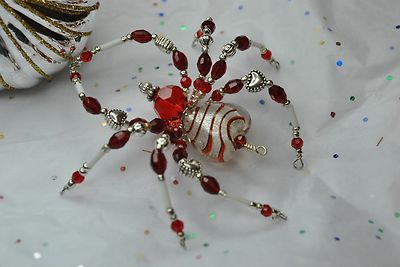 Title (ebay affiliate link): Beaded Spider Silver & Ruby Striped Heart Murano Handmade July Birthstone