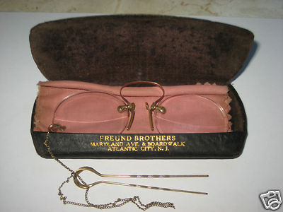Title (ebay affiliate link): ANTIQUE PINCE NEZ CHILDS EYEGLASSES RIMLESS W/ HAIR PIN CHAIN IN ORIG CASE