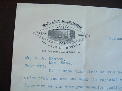Title (ebay affiliate link): 1908 "William A.Jepson signed Coal Mining",Boston/GREAT MINING CAR letter!