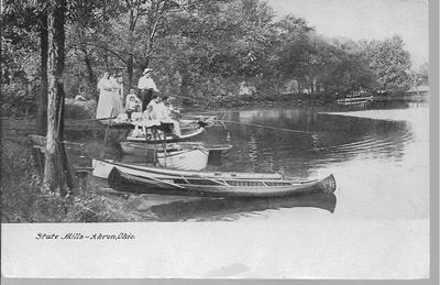 Ohio, Akron, Black and White Vintage Postcard State Mills Fishing