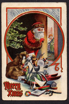 Title (ebay affiliate link): Antique Postcard Santa Claus Peeks/Peeps/Peeking Sleeping Red Haired Child Sleep