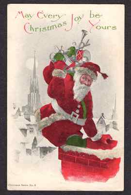 1907 Santa Claus Postcard UDB Chimney Coraline/Glassine Glass Bits Shards VG s/8