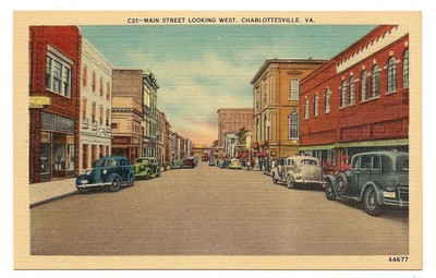 Linen, Main Street Looking West, Charlottesville, VA, 1940s Cars
