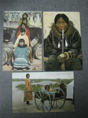 Title (ebay affiliate link): Antique 1911 Postcards Alaska Eskimos Nome, Woman Hitting the Pipe, Quintette