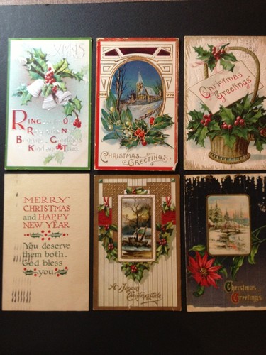 Lot of 6 Antique Christmas Postcards Daisy & Cassie Junkin Bloomington Indiana