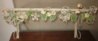 Title (ebay affiliate link): Charming VIntage Shabby White Pink Green Roses Floral Metal Tole Wall Shelf