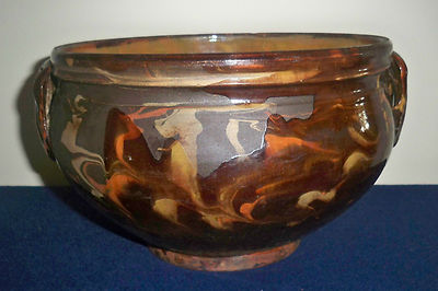 Title (ebay affiliate link): Antique 19th Century Stoneware Redware Handled Bowl Swirl Design Rare 11"