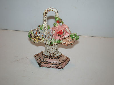 Antique Cast Iron Doorstop Figural Basket of Flowers