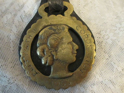 Title (ebay affiliate link): Vtg HORSE Brass Harness Leather Strap Bridle Medallion: Coronation Queen 1955