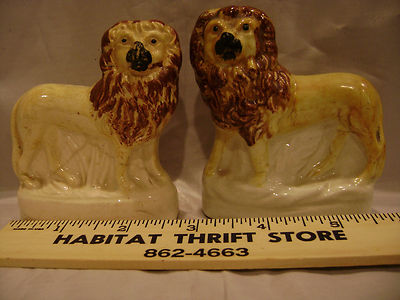 Pair of Miniature Staffordshire ~ LIONS ~ Victorian Small Figures