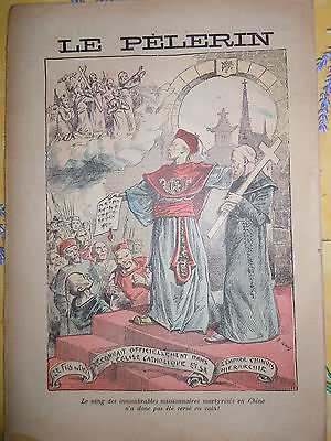 Old Print 1899 Color Engraving In Memory Massacre Of Christians in China