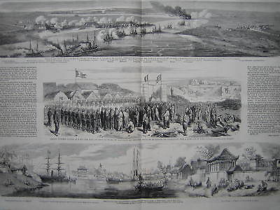 OLD PRINT ENGRAVING 1858 CHINA WAR BATTLE OF PEI-HO TIEN-TSING