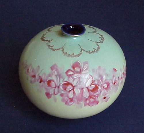 Title (ebay affiliate link): Small Vintage Hand Painted Vase Delicate Pastel Miniature Boulbous Orb Style