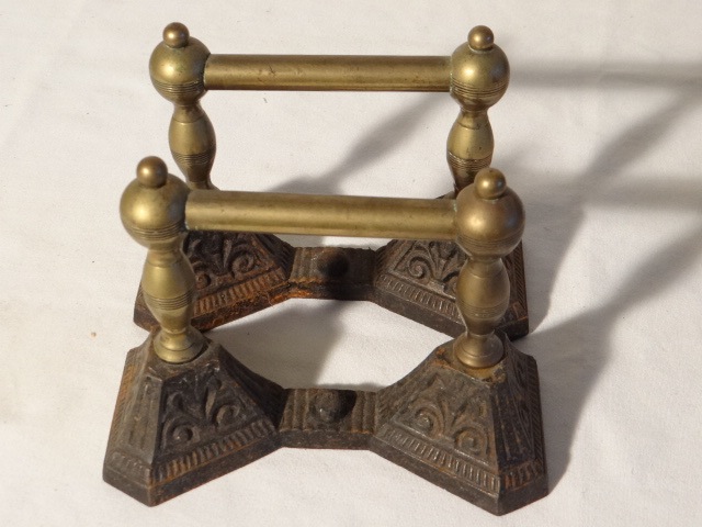Antique Pair Brass & Cast Iron Fire Dogs Andiron - FATHERS DAY SALE - bigpelican