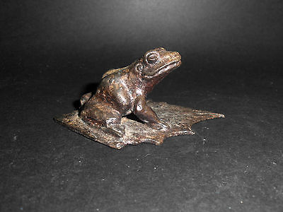 VINTAGE BRONZE FROG ON A LILY PAD FIGURINE