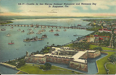 1957 Curteich Linen Postcard Castillo de San Marcos Monument/Bay St Augustine FL