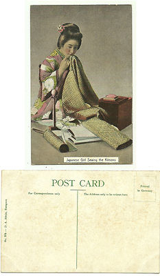 Title (ebay affiliate link): JAPAN Tinted PostCard JAPANESE GIRL Sewing the KIMANO D.A.Ahuja Rangoon