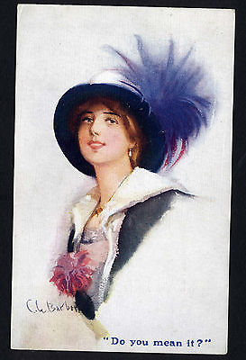Postcard,Lady Feather in Hat ," Do You Mean it .? "