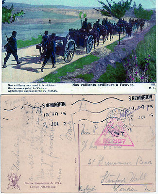Title (ebay affiliate link): WW1 1915 FRENCH PC OAS FPO & CENSOR , SIGNED " GUNNERS GOING TO VICTORY " RARE