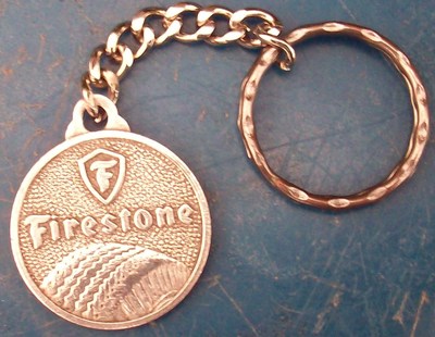 Title (ebay affiliate link): VINTAGE FIRESTONE TYRES SILVER PLATED METAL FOBBED KEYRING KEYCHAIN
