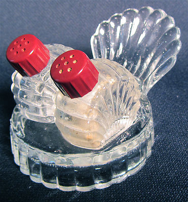 Title (ebay affiliate link): Vtg 1940's/50's Depression Glass Scalloped Shell Salt Pepper Shaker Set w/Stand