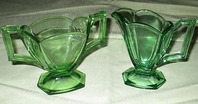 Title (ebay affiliate link): Vintage Green Depression Glass Open Sugar and Creamer