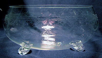 Title (ebay affiliate link): Vintage 3-Footed 10" Cupped Glass Depression? Unknown Etched Rose/Flower Bowl