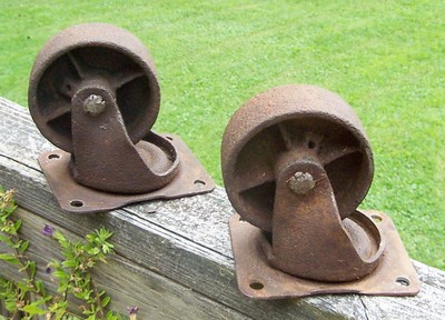 Title (ebay affiliate link): Vintage Cast Iron 4" by 1 1/2" Caster Wheels in Pressed Steel Swivel Frames