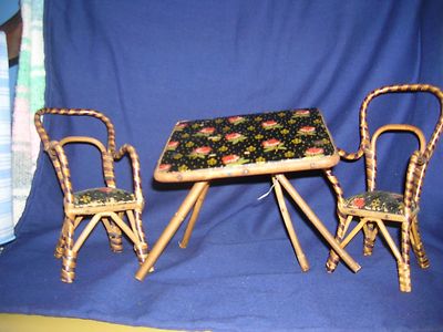 Antique 3 piece wooden furniture table and chairs for dolls dollhouse