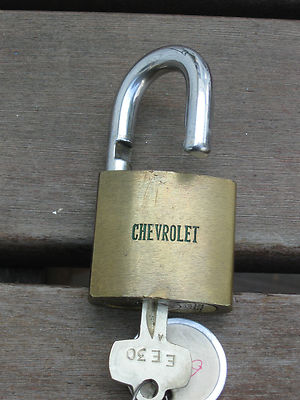 VINTAGE CHEVROLET ASSEMBLY PLANT BRONZE PADLOCK WITH KEY
