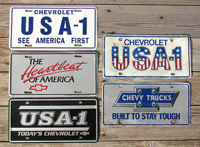 vintage CHEVY USA 1 HEARTBEAT OF AMERICA SEE AMERICA 1ST LICENSE PLATE LOT sign