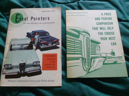 Title (ebay affiliate link): PAIR OF 1950S FORD EDSEL LITERATURE PRICE & FEATURE COMPAIRISON, EDSEL POINTERS
