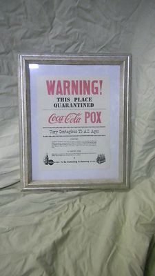 Title (ebay affiliate link): Coca Cola sign "Warning! This place Quaranteined Coca-Cola Pox"