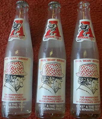 Title (ebay affiliate link): UNIVERSITY OF ALABAMA PAUL ' BEAR ' BRYANT COKE BOTTLES ( 3 ) STARTS AT 1 PENNY