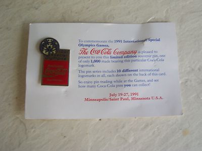 Title (ebay affiliate link): VINTAGE COCA COLA 1991 SPECIAL OLYMPICS 'GREECE'' PIN
