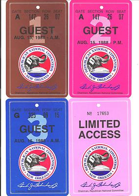 Title (ebay affiliate link): 1988 Republican National Convention -New Orleans, LA 4 Differnet passes -Nice