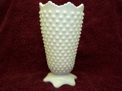 Title (ebay affiliate link): Fenton Hobnail white milk glass vase w/ scalloped edge.