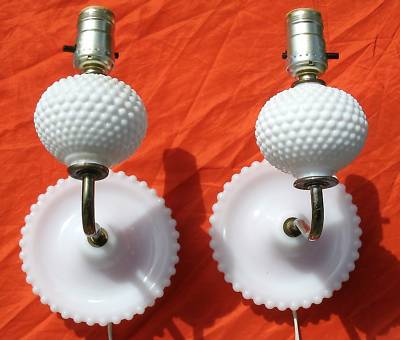 Pair of Milk Glass Hobnail Electric Wall Sconces WORKS