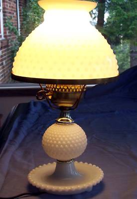 Hobnail Milk Glass Hurricane Electric Lamps w/ shade