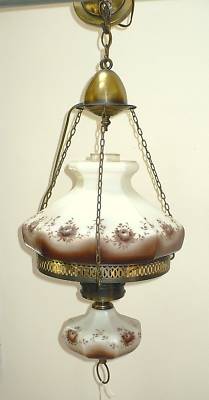 Hanging Colonial Style Elec Milk Glass Hurricane Lamp