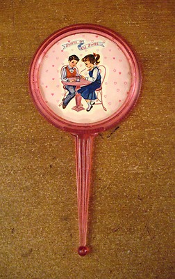 Title (ebay affiliate link): Vintage Pink Childs Toy Cosmetic Vanity Mirror US Made Sweets For The Sweet