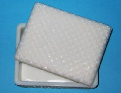 MILK GLASS TRINKET BOX WITH DIAMOND PATTERN