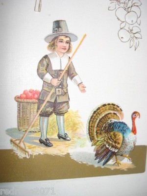 Title (ebay affiliate link): SAS Vintage OLD Holiday Thanksgiving postcard TURKEY Pilgrim with RAKE APPLES