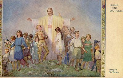 Title (ebay affiliate link): VINTAGE MEDICI postcard BEHOLD I SEND YOU FORTH Margaret Tarrant Pk149
