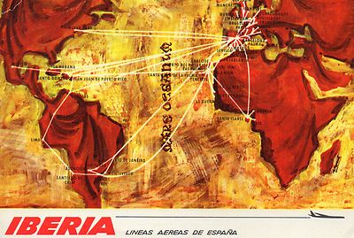 VINTAGE IBERIA AIRLINES postcard MAP OF ROUTES